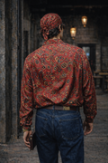 A statement printed shirt featuring an all-over floral pattern in deep red and earthy tones. Designed to stand out while remaining easy to style, this piece blends bold print with a relaxed, wearable silhouette.